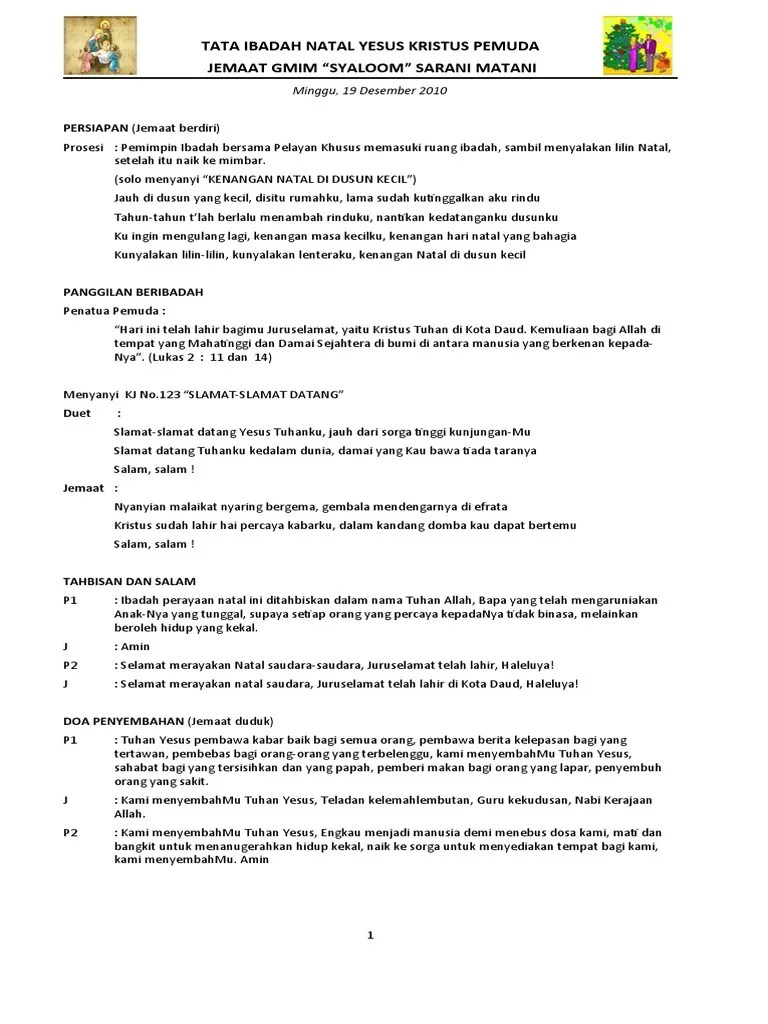 Liturgi Natal Pemuda Ml Tb Docx from imgv2-1-f.scribdassets.com Liturgi natal ppgt terbaru / liturgi natal 2014 berjumpa. Bpk agus s dan bpk ari singer: Liturgi natal ppgt terbaru these pictures of this page are about:contoh liturgi ibadah natal. Misa liturgi natal , senin 28 desember 2020 pk 18.00 подробнее. 40 koleski terbaik liturgi natal anak sekolah minggu. 0 response to liturgi ibadah ppgt yang mudah di pahami. Karena banyaknya yang meminta file liturgi di mastimon.com maka untuk. Contoh susunan acara natal terbaru.