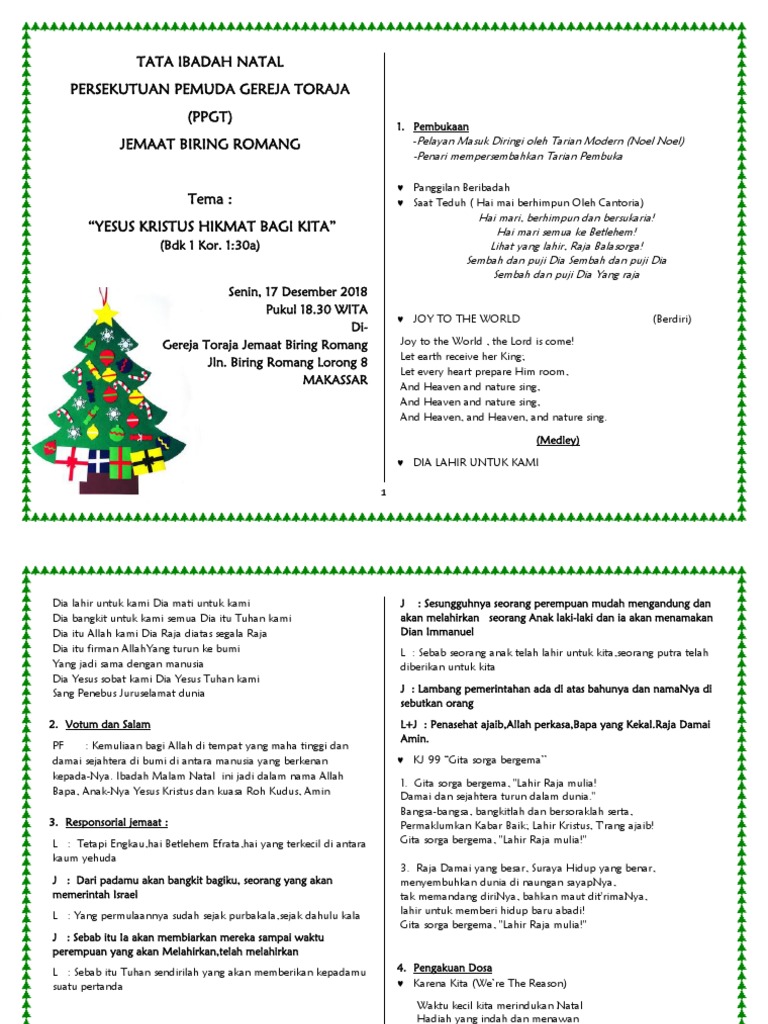 Tata ibadah natal ppgt 2018 doc tata ibadah natal ppgt jemaat eben haezer nunukan dan hut ppgt ke 56 jumat 14 desember 2018 5 pf 1 pl saudara saudara course hero : Persiapan perayaan natal dibutuhkan beberapa minggu sebelum acara tersebut di laksanakan, salah satunya adalah penyusunan lagu … Liturgi natal ppgt terbaru / liturgi natal 2014 berjumpa. 20+ trend terbaru ayat liturgi natal. Seperti tampak pada rekaman kamera yang diunggah tersebut. Contoh liturgi natal atau tata ibadah perayaan natal lengkap. Keselamatan itu berlangsung dalam peristiwa yang sangat biasa. Contoh liturgi natal umum, pemuda remaja dan sekolah minggu. Tata ibadah malam natal keluarga (di rumah). Liturgi natal ppgt terbaru these pictures of this page are about:contoh liturgi ibadah natal. Liturgi adalah bahagian dari ibadah, sedangkan ibadah adalah bahagian dari hidup, jadi hidup dan liturgi harus nyata di dalam ibadah. Contoh liturgi natal atau tata ibadah perayaan natal lengkap dengan lirik lagu. Sdr santy pembawa mahkota ;